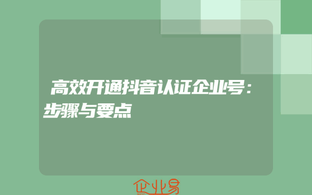- 高效开通抖音认证企业号:步骤与要点