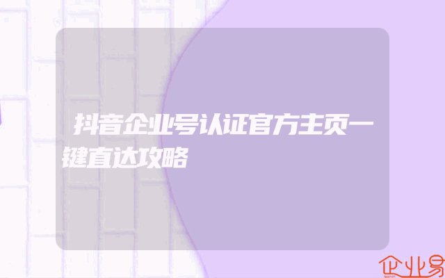 - 抖音企业号认证官方主页一键直达攻略