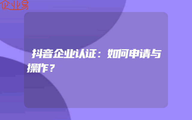- 抖音企业认证:如何申请与操作?