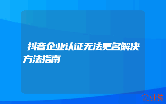 - 抖音企业认证无法更名解决方法指南一、问题现象及影响随着抖音平台的发展,越来越多的企业通过抖音开展品牌推广和业务运营。然而,有时企业在完成抖音企业认证后会遇到无法更改昵称的问题,这对于企业来说可能会造成一定的困扰。无法更名可能涉及到品牌形象塑