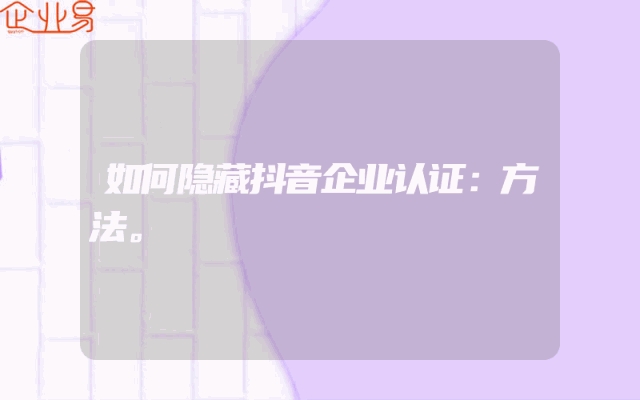 - 隐藏抖音企业认证的方法详解了解抖音企业认证的重要性在开始探讨如何隐藏抖音企业认证之前,我们必须认识到企业认证在抖音平台上的重要性。企业认证不仅能够提升企业的信誉度,还能带来一系列的权益,如品牌展示、数据统计等功能。然而,在某些情况下,出于各