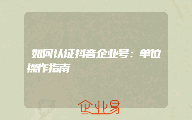- 如何认证抖音企业号:单位操作指南