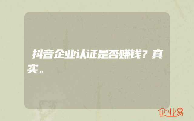- 抖音企业认证是否赚钱?真实。