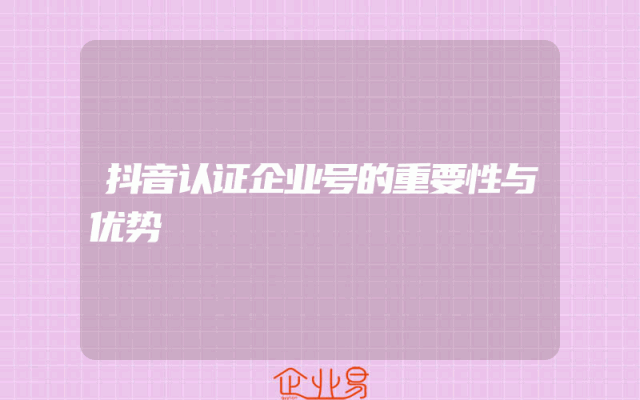 - 抖音企业认证的作用与优势知多少?一、抖音企业认证的重要性在当今数字化时代,社交媒体已成为企业品牌推广、市场营销不可或缺的一部分。抖音作为领先的短视频社交平台,拥有庞大的用户群体和广阔的商业前景。进行抖音企业认证,对于提升企业的品牌形象、扩大