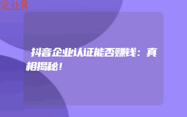 - 抖音企业认证能否赚钱:真相揭秘!一、抖音企业认证简介随着互联网的快速发展,抖音作为一款领先的短视频社交平台,吸引了大量用户的关注。企业认证是抖音平台为企业提供的一项权威认证服务,旨在区分普通用户与企业账号,提升企业的公信力和品牌影响力。二、