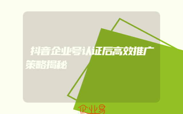 - 抖音企业号认证后高效推广策略揭秘一、抖音企业号认证的重要性随着抖音的快速发展,越来越多的企业意识到了抖音平台巨大的商业价值。在抖音上,通过企业号认证,企业不仅可以提升品牌影响力,还能获得更多与消费者互动的机会。认证后的企业号,拥有更多的特权