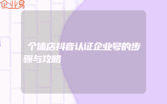 - 个体店抖音认证企业号的步骤与攻略