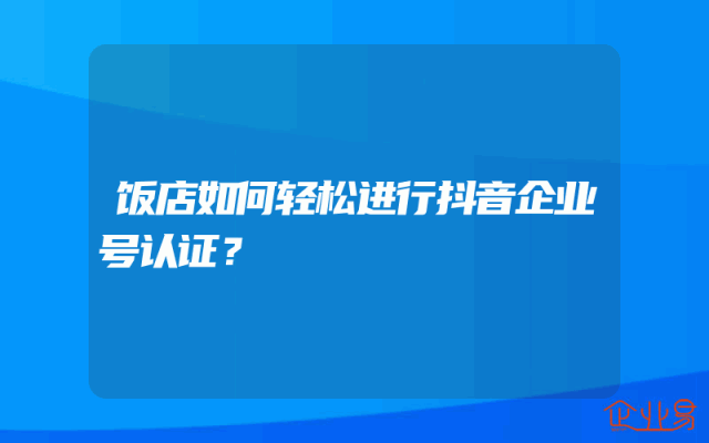 - 饭店如何轻松进行抖音企业号认证?