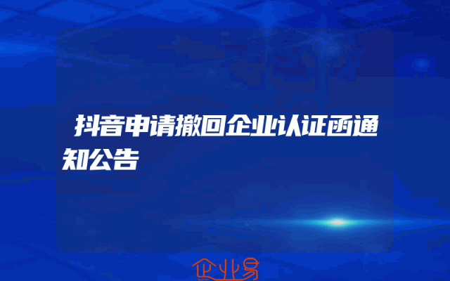 - 抖音申请撤回企业认证函通知公告一、背景介绍随着互联网的迅速发展,抖音作为一款广受欢迎的短视频社交平台,吸引了众多企业入驻。在进行企业认证过程中,有些企业基于各种原因可能需要撤回认证。鉴于此情况,抖音平台近期发布了关于申请撤回企业认证的通知公
