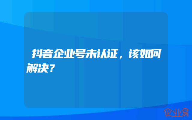 - 抖音企业号未认证,该如何解决?
