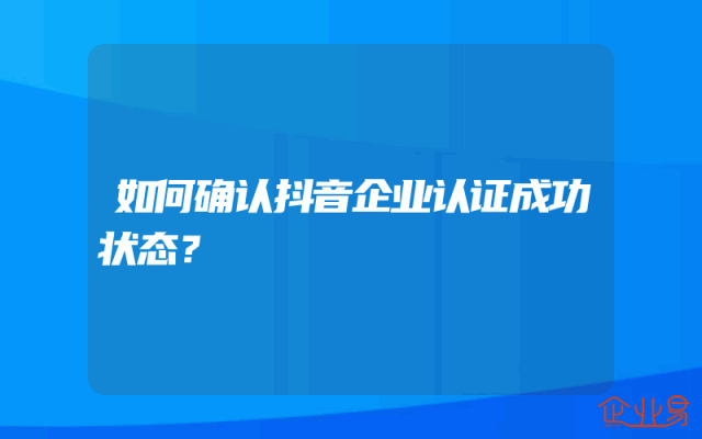 - 如何确认抖音企业认证成功状态?
