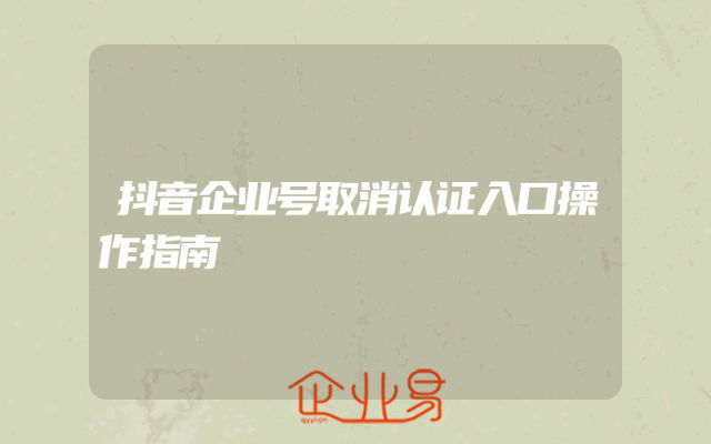 - 抖音企业号取消认证入口操作指南