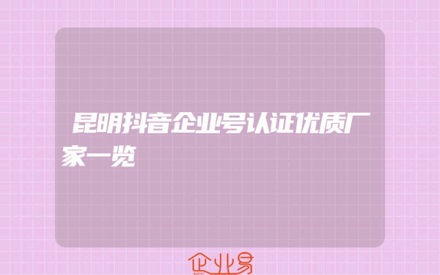 - 昆明抖音企业号认证优质厂家一览