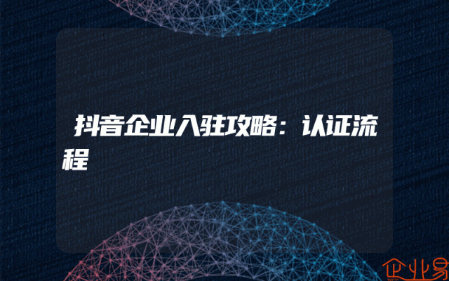 - 抖音企业入驻攻略:认证流程