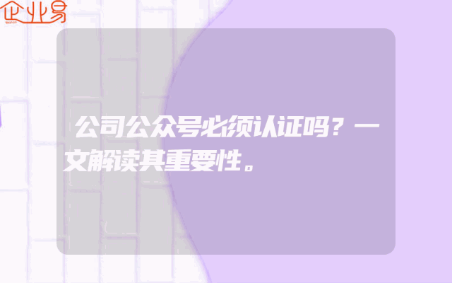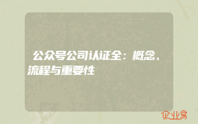 - 公众号公司认证全:概念、流程与重要性