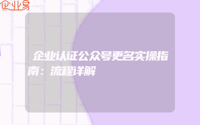 - 企业认证公众号更名实操指南:流程详解一、了解公众号更名政策与前提在企业运营公众号的过程中,因战略调整、品牌定位变化等原因,可能需要更改公众号的名称。首先,企业需要明确公众号的更名政策,包括允许的更改频率、是否需要审核等。同时,确保在更名前公