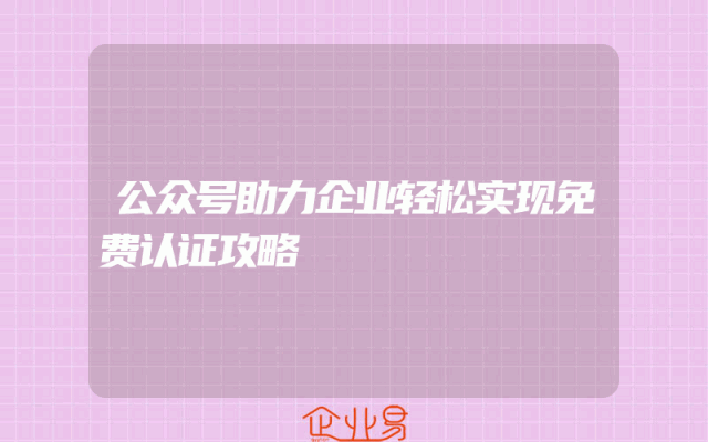 - 公众号助力企业轻松实现免费认证攻略