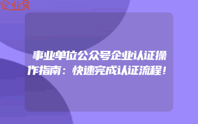 - 事业单位公众号企业认证流程:快速完成认证操作!