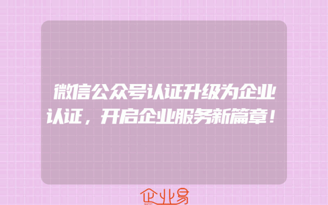 - 微信公众号认证升级为企业认证,开启企业服务新篇章!