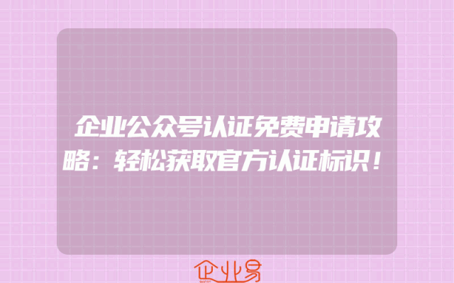 - 企业公众号认证免费申请攻略:轻松获取官方认证标识!