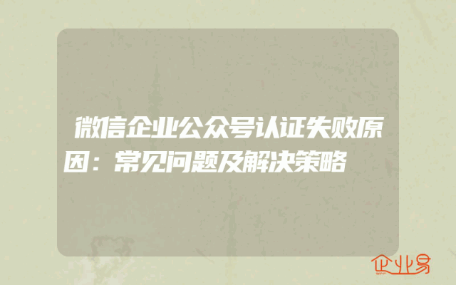 - 微信企业公众号认证失败原因:常见问题及解决策略