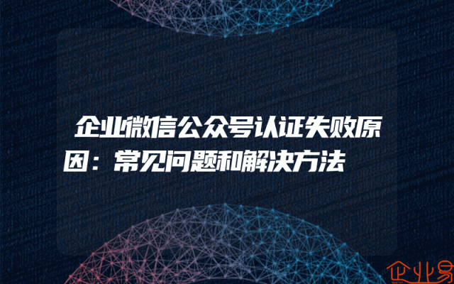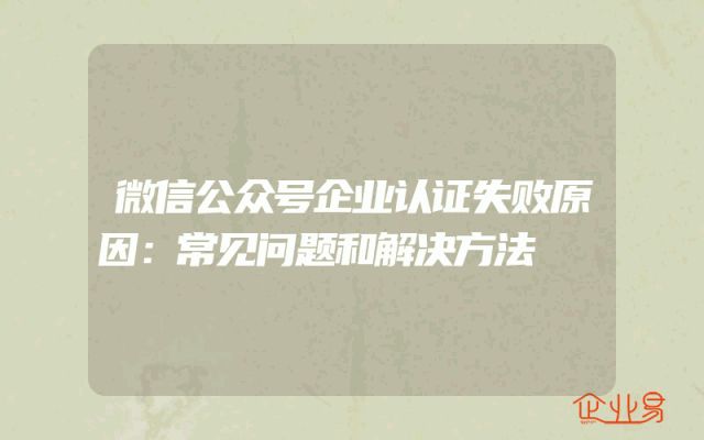 - 微信公众号企业认证失败原因:常见问题和解决方法