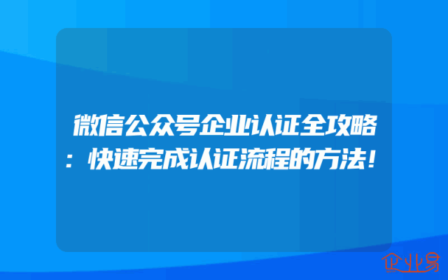 - 微信公众号企业认证全攻略:快速完成认证流程的方法!
