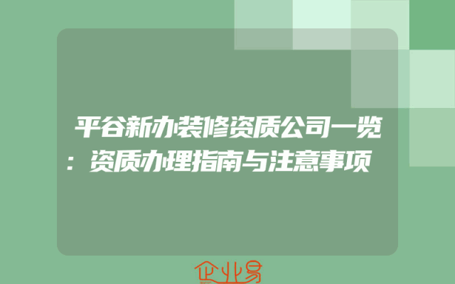 - 平谷新办装修资质公司一览:资质办理指南与注意事项
