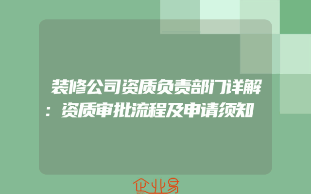 - 装修公司资质负责部门详解:资质审批流程及申请须知