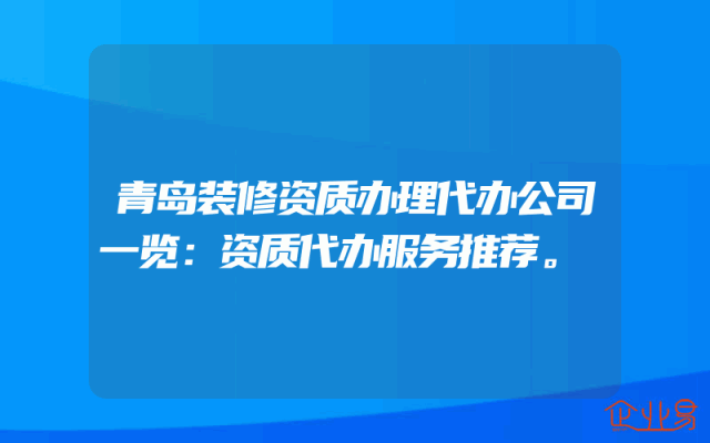 - 青岛装修资质办理代办公司一览:资质代办服务推荐。
