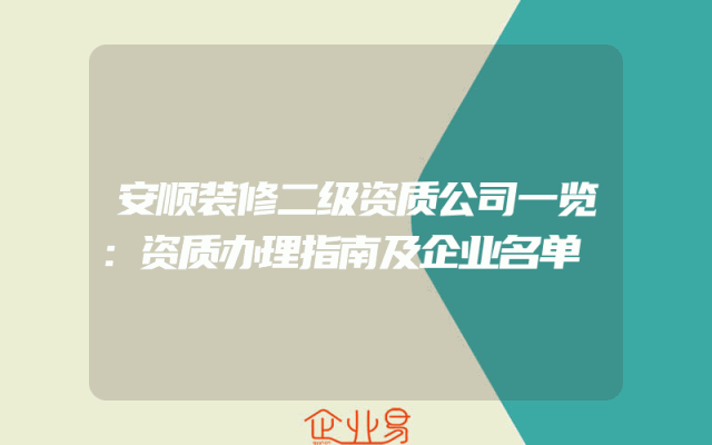 - 安顺装修二级资质公司一览:资质办理指南及企业名单