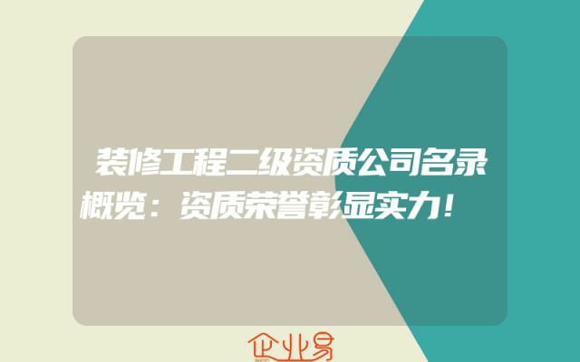 - 装修工程二级资质公司名录概览:资质荣誉彰显实力!