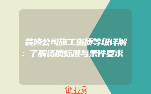 - 装修公司施工资质等级详解:了解资质标准与条件要求