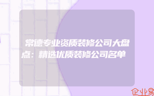 - 常德专业资质装修公司大盘点:精选优质装修公司名单