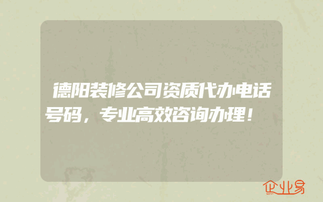 - 德阳装修公司资质代办电话号码,专业高效咨询办理!