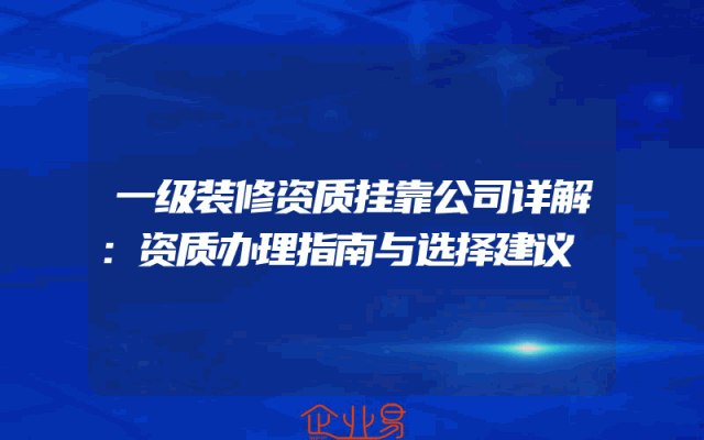 - 一级装修资质挂靠公司详解:资质办理指南与选择建议