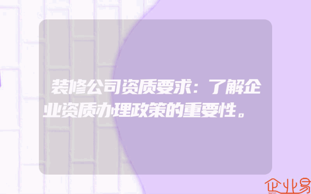 - 装修公司资质要求:了解企业资质办理政策的重要性。
