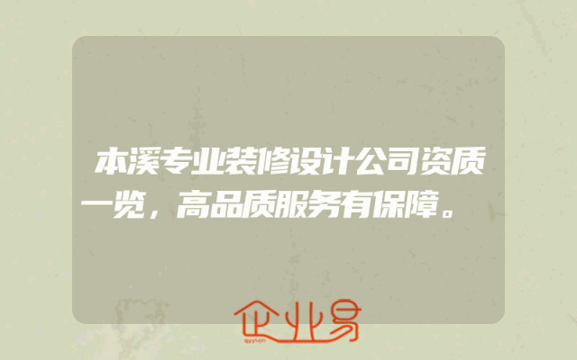 - 本溪专业装修设计公司资质一览,高品质服务有保障一、资质概述随着社会的不断发展,人们对生活品质的追求越来越高,尤其在装修设计领域。本溪地区的装修设计市场竞争激烈,因此,专业装修设计公司的资质和服务质量成为客户选择的重要因素。二、资质分
