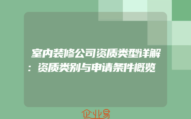 - 室内装修公司资质类型详解:资质类别与申请条件概览