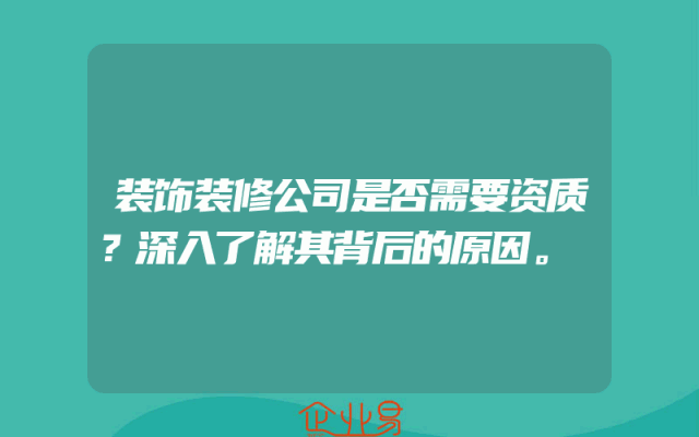 - 装饰装修公司是否需要资质?深入了解其背后的原因。