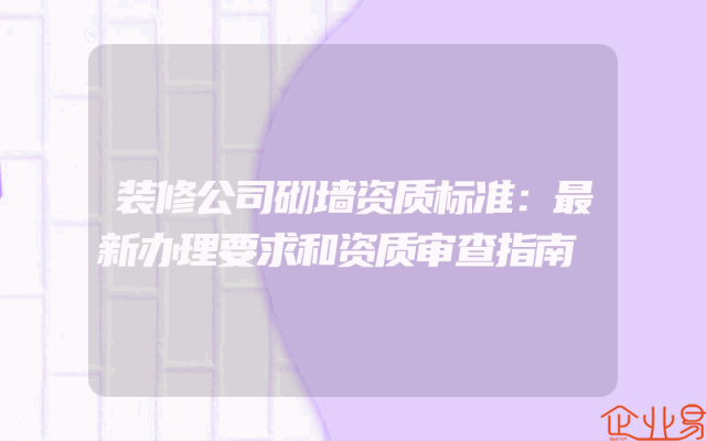 - 装修公司砌墙资质标准:最新办理要求和资质审查指南