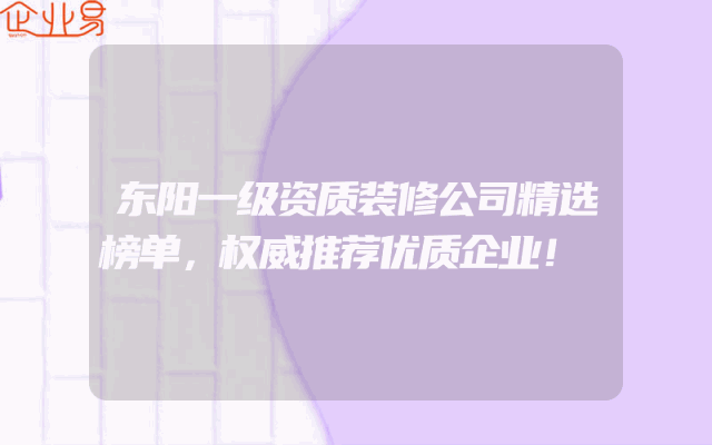 - 东阳一级资质装修公司精选榜单,权威推荐优质企业!