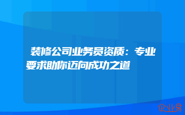 - 装修公司业务员资质:专业要求助你迈向成功之道