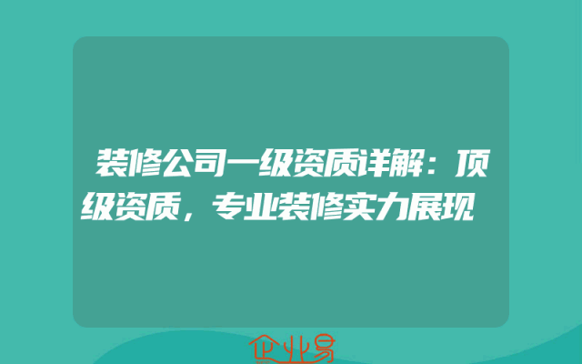 - 装修公司一级资质详解:顶级资质,专业装修实力展现