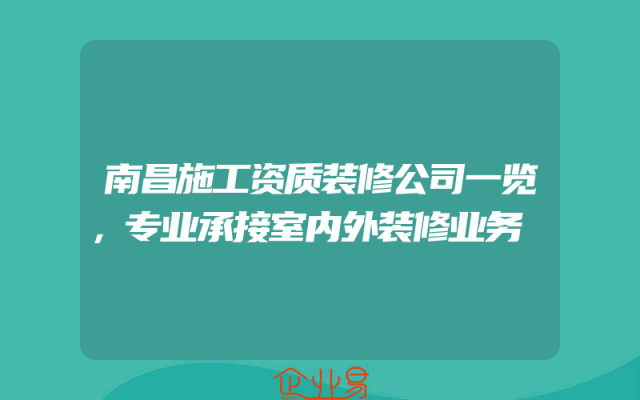 - 南昌施工资质装修公司一览,专业承接室内外装修业务