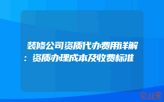 - 装修公司资质代办费用详解:资质办理成本及收费标准