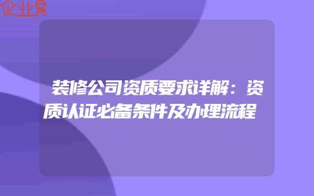 - 装修公司资质要求详解:资质认证必备条件及办理流程