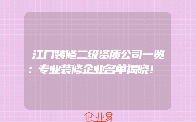 - 江门装修二级资质公司一览:专业装修企业名单揭晓!