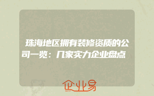 - 珠海地区拥有装修资质的公司一览:几家实力企业盘点