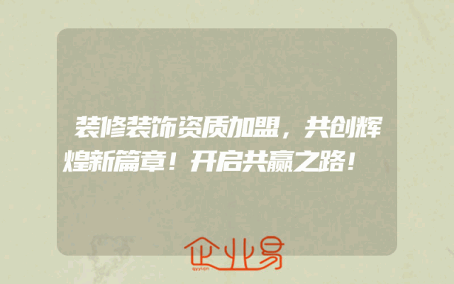 - 装修装饰资质加盟,共创辉煌新篇章!开启共赢之路!